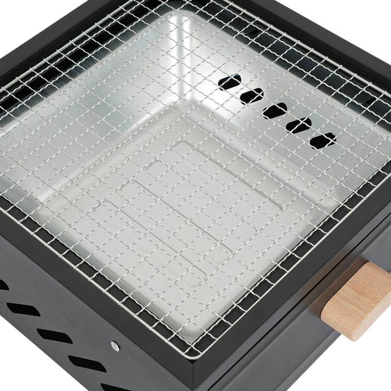 Diseño portátil: Tamaño compacto con asa de madera, fácil de transportar, que te permite disfrutar de barbacoas o té en cualquier momento y en cualquier lugar.