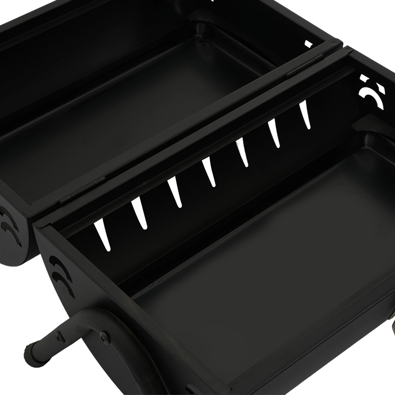 Materiales superiores y duraderos: La parrilla está hecha de metal de alta calidad con excelente retención de calor. El revestimiento de superficie de alta densidad no solo es resistente al óxido y a la corrosión, sino que también es fácil de limpiar y mantener, lo que garantiza la durabilidad de cada barbacoa al aire libre.